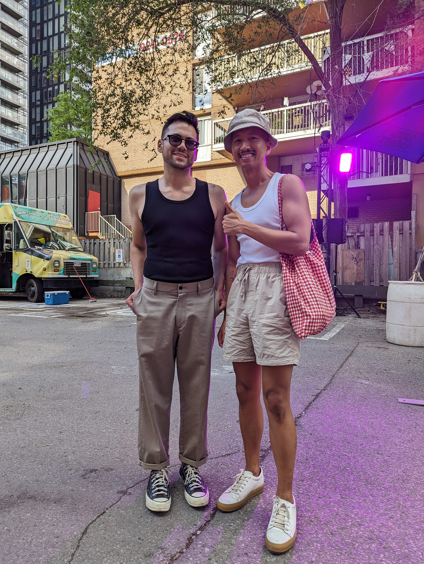 In the afternoon, I take a quick nap before socializing. There’s a group chat and I get a bunch of texts asking what out ETA is. Brush my teeth and put on an obligatory gay outfit: a white tank top. We meet at The 519 and I immediately head to the bar. A shitty Heineken for myself and Topo Chico Margarita for Daniel. $24.
