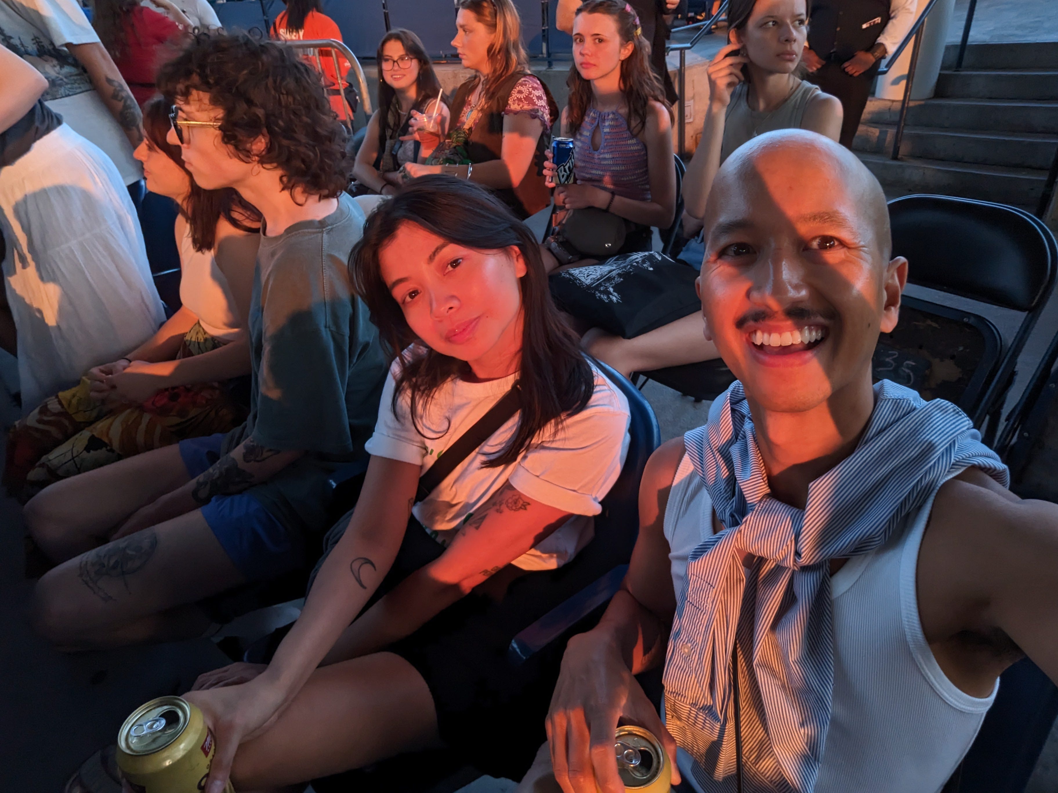 The scene is pretty cool. Very queer. Lots of great outfits. The venue is a food hall and a friend said this is the first year that it’s open and it’s very very sweaty. I run into a lot of people. People I know and people I personally don’t know, but have seen their faces. I order two drinks even though I told myself I wouldn’t order any. $25. Maybe an hour later I order one more, but I pointed to the strawberry margarita and I only finish half.